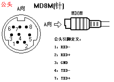 上張三菱PLC圓頭8針的rs422接口定義圖片 |