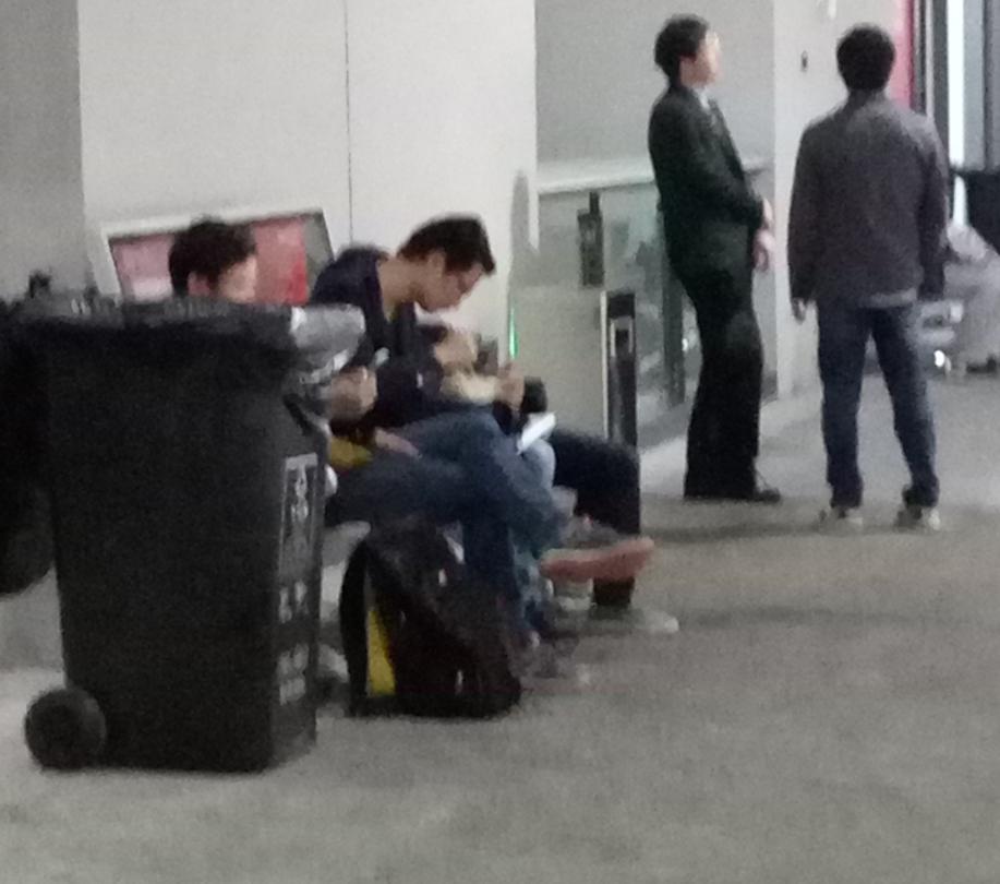 二是拖著裝滿資料的另一位小哥從肯德排隊人群前淡然離去