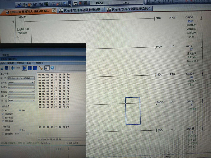 串口寫入01 05 00 02 FF 00 2D FA,然后d8422 就報錯204了,
