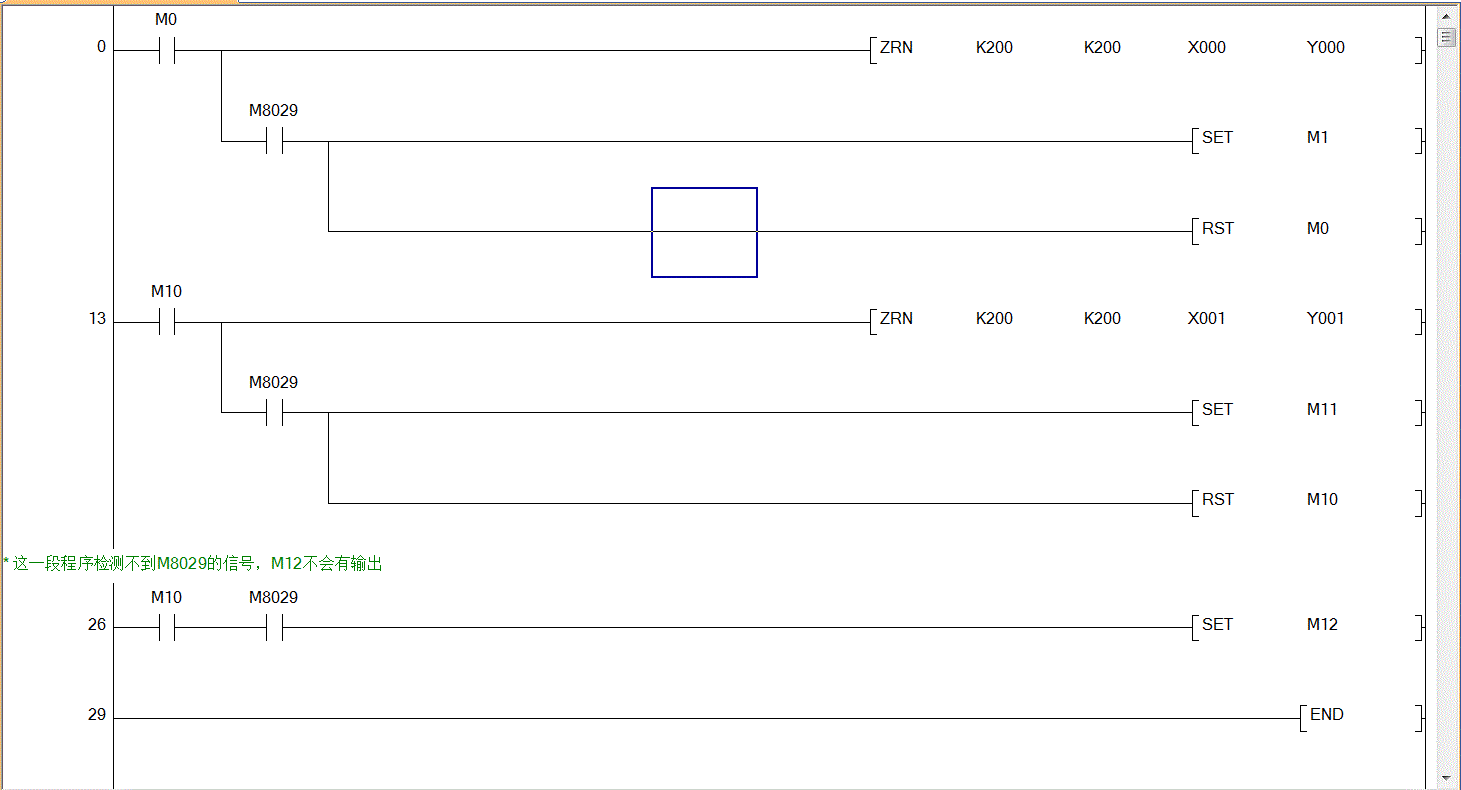 m8029不會ON一個掃描周期。2樓說的沒問題。