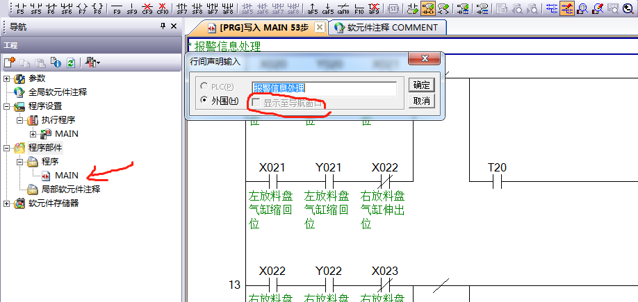 三菱FX3U編程時(shí)怎么把怎么把行間聲明 顯示到導(dǎo)航窗口