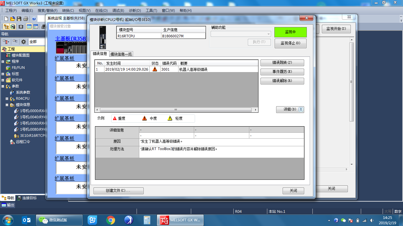 公司新設備上,有三菱R系列PLC,一套,是多CPU系統,一個R04CPU和一個R16RTCPU(運動CPU),請高手指點一下。怎么設置CPU的緩沖存儲器?現在R16RTCPU總是報警。