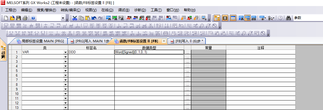 各位大師:三菱二維數組在梯形圖里面如何輸入呢,一維數組可以,二維數組輸入不了。例如: 標簽里面定義   VAR:   DDD(0..2,0..3)為一個二維數組,在梯形圖里面如何輸入。
