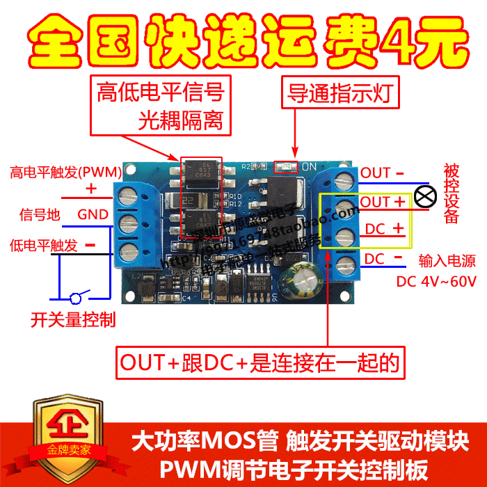在淘寶上買(mǎi)的一塊mos開(kāi)關(guān)模塊,想用來(lái)通過(guò)pwm控制小馬達(dá)的速度,用三菱3u(漏型)該怎樣接線呢?這板子是不是要接源型輸出的,疑惑。