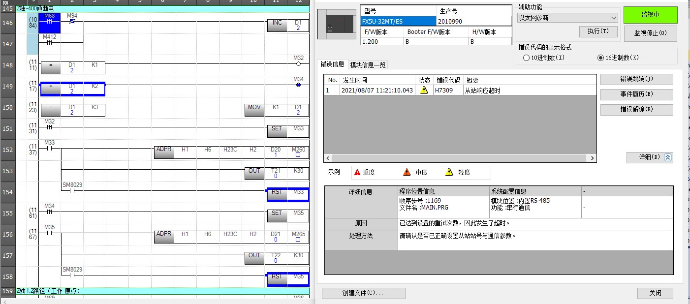各位麻煩問下這是什么情況,參數設定都一致,電機驅動器站號也是1,但是還是顯示通訊超時。