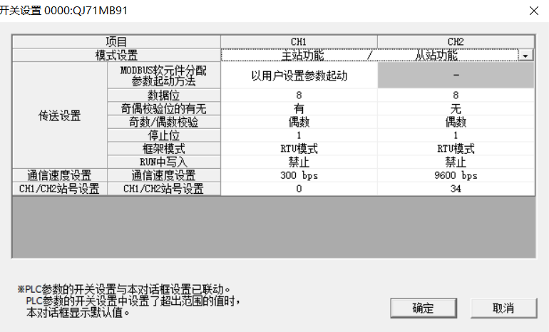 QJ71MB91做從站,CH1 主站300波特率(不用)CH2從站波特率只能設定9600,