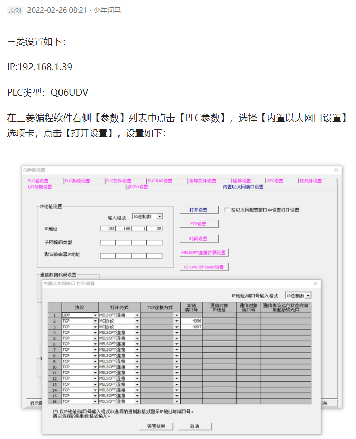三菱Q06UDV CPU 與安川MP2300S cpu簡易通信設置 原產分享抖音關注【自動化河馬】,今日頭條關注【少年河馬】不定時分享個人程序案列