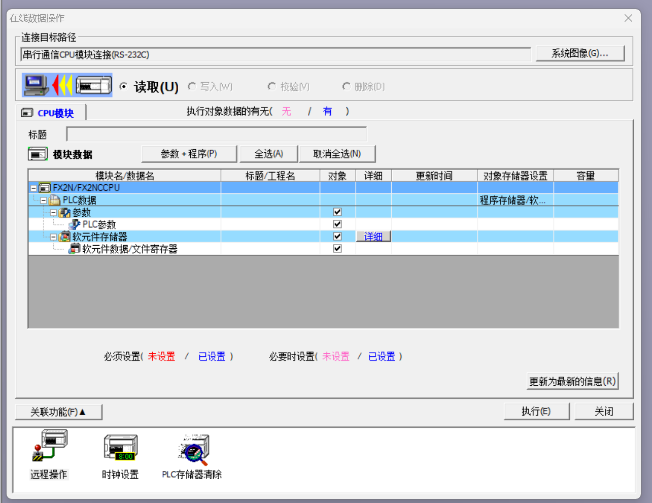 近期碰到個FX2N PLC ,讀取程序時,無程序選項,程序有加密,在我的認(rèn)知中,輸入關(guān)鍵字是在讀取選項的后面,為什么這個會不顯示程序的選項呢?請高手指導(dǎo)下怎么處理?