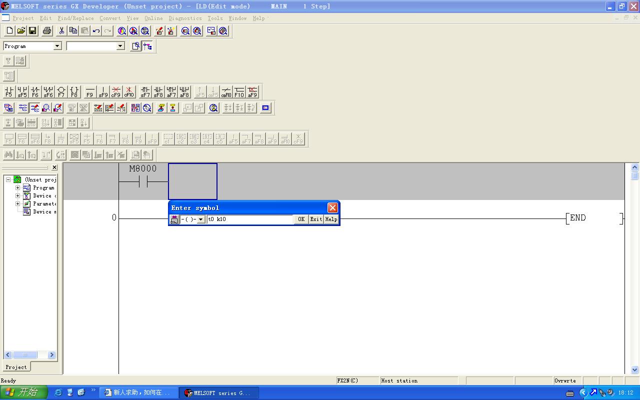 我剛開(kāi)始學(xué)習(xí)PLC。嘗試著編程,用的是GX-devoloper6。中文版。在一個(gè)T型圖中,想寫(xiě)入時(shí)間控制T0,可這個(gè)記時(shí)器怎么也找不到指令來(lái)完成。請(qǐng)教高人了。