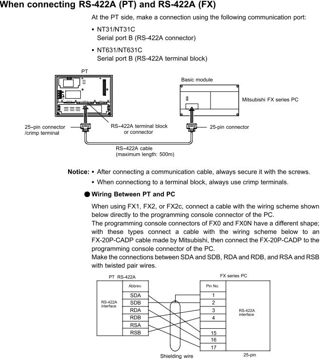 我用FX2n的編程電纜SC-09 9針對25針(RS422)線,再通過25針口連接OMRON NT31C的portA或portB口,參考OMRON公司