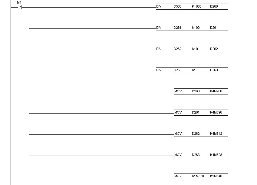mov d260 k4m280就是把D260內的數據轉移到M280-M295中,K4M280表示4X4=16即M280-M295