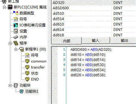 PLC的功能塊都差不多啊,歐姆龍功能塊可以用結(jié)構(gòu)文本和梯形圖編寫(xiě),你這個(gè)就是結(jié)構(gòu)文本寫(xiě)的求絕對(duì)值