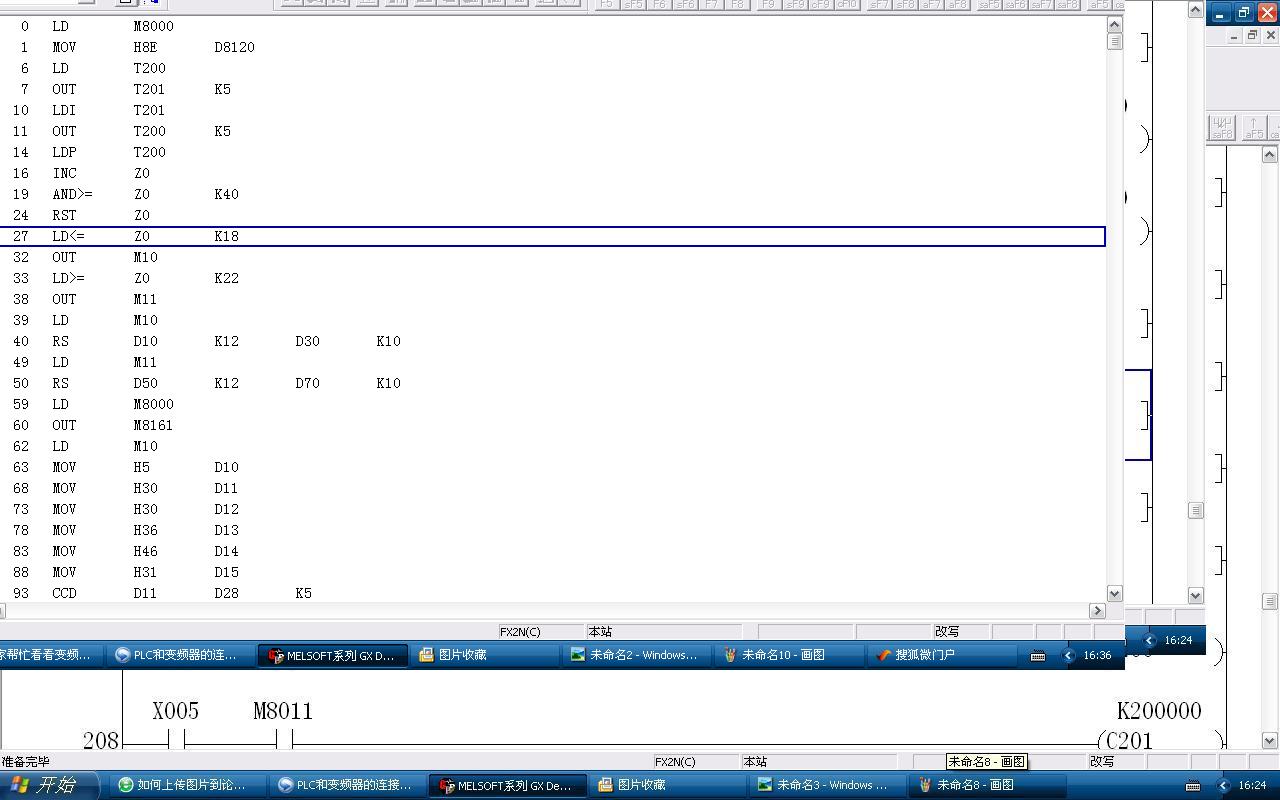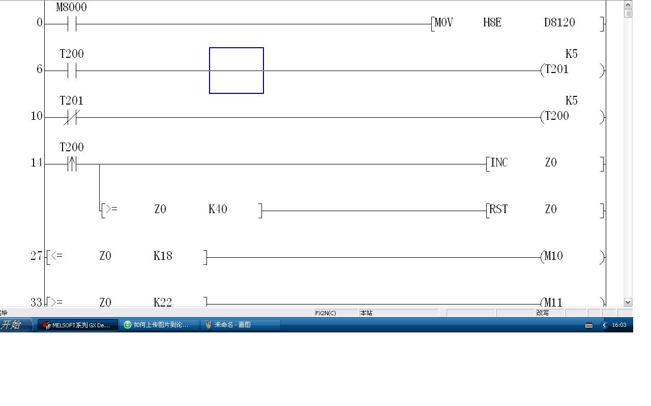 好像你RS CCD 通訊保持都沒有寫的 還有變頻器的通訊格式一定要設(shè)置正確 地址也同樣重要  變頻器設(shè)好后要重啟   你照著FX手冊通訊篇寫就肯定正確了  通過觸摸屏更容易做 沒有必要寫程序