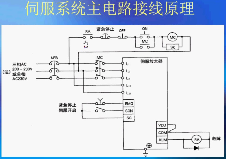 1樓版主,我想跟你請教下,我按照改圖去接線,為什么伺服的ALM無24V電壓輸出,它驅動不了外接RA繼電器呢?我控制電源有電,但主電路始終無法導通?我實際接線就是按照這個圖來的,但是無法是主電路導通,困惑,求指點!
