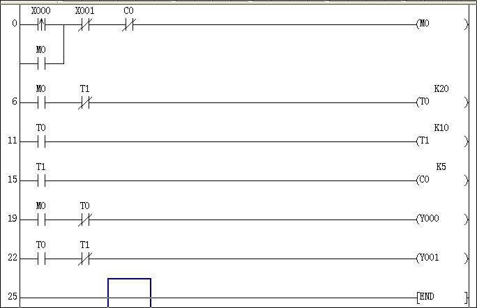 要求:x0啟動后,y0先動2秒,然后y1動1S,循環(huán)5次。Y1與Y2同時停止。
