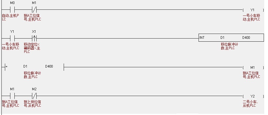 燒錢的做法:  地面Q PLC  通過光傳輸器與小車上的FX PLC 通訊   一邊對應一臺小車 FX PLC 。 (這個必須寫通訊程序)