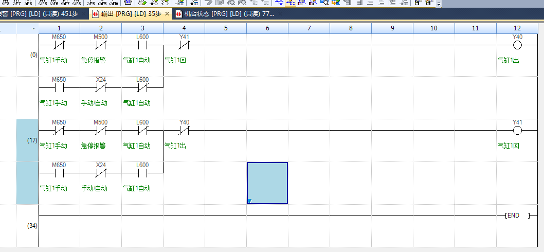 一個改造設備,我也沒得選啊。有單獨寫用急停上升沿復位所有的氣缸手動M
