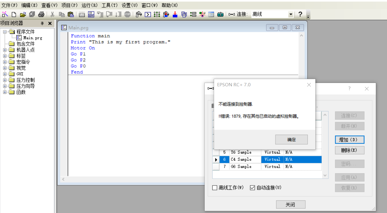 下載了軟件,想學習,但是不能離線連接模擬,請問大神們這是什么問題??