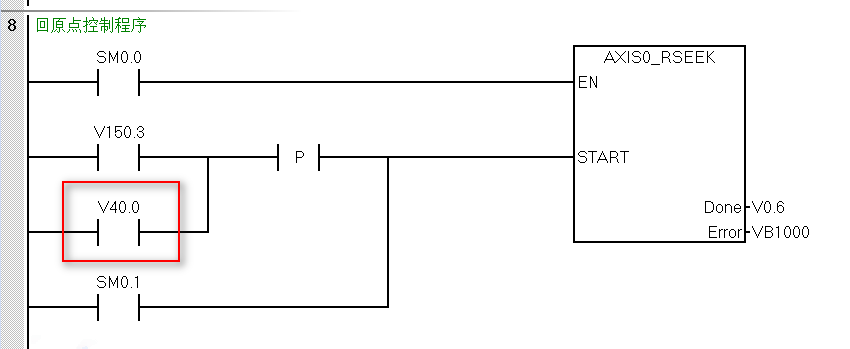 也就是用最后一次定位網絡7的定位完成V40.0,代替網絡8的M0.5, 這樣網絡7定位完成后, 才執行網絡8回原.