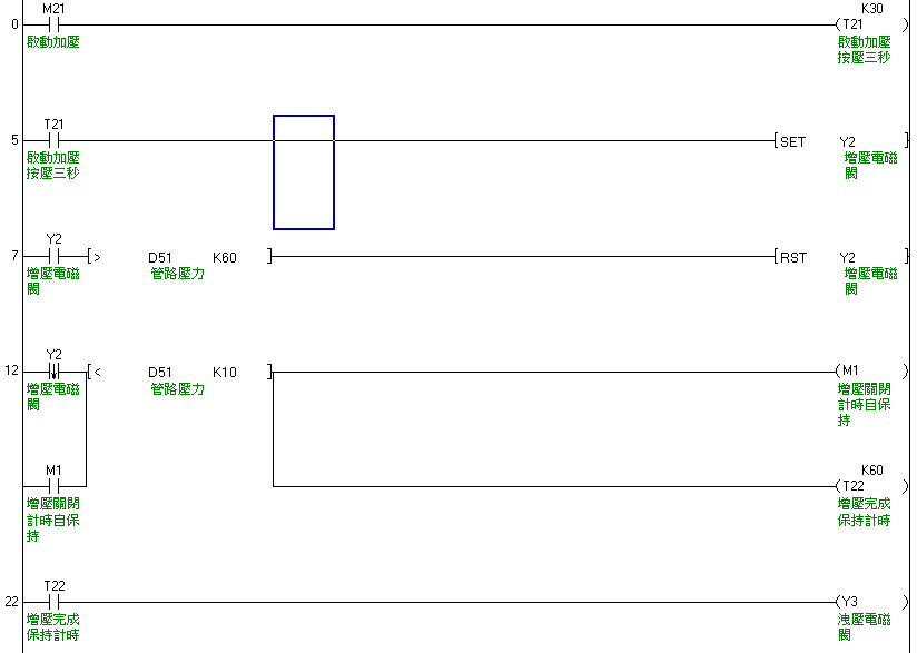 引用引用第7樓小侯于2023-12-15 15:36發(fā)表的 :[attachment=293177] 按壓M21達三秒以上啟動Y2增壓當壓力到達60以上停止增壓電磁閥Y2並觸動計時T22,T22計時六秒到達觸動Y3洩壓電磁閥.......
