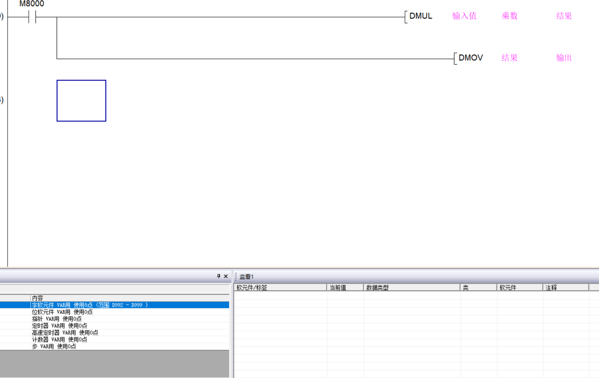 在FB中如果使用32位乘法或除法指令,結果會占用64位,但是三菱這個FB寄存器分配的時候只會分配 為32位寄存器,造成地址沖突