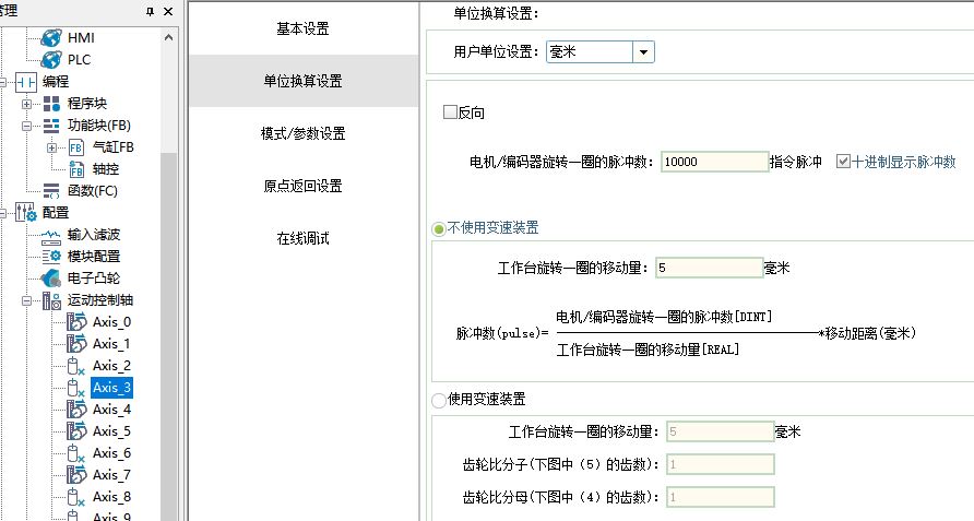 引用引用第4樓卓發(fā)智能于2025-03-15 08:07發(fā)表的 :如果步進電機是開環(huán)且沒有減速機的情況下,每圈脈就設(shè)你驅(qū)動器上的撥碼細分數(shù),每圈距離就設(shè)置絲桿導程就可以了。后面就是回原點方式,如果只有一個原點信號就選回原方式為21,如果有正負極限位就選27,可根據(jù)需要設(shè)置。