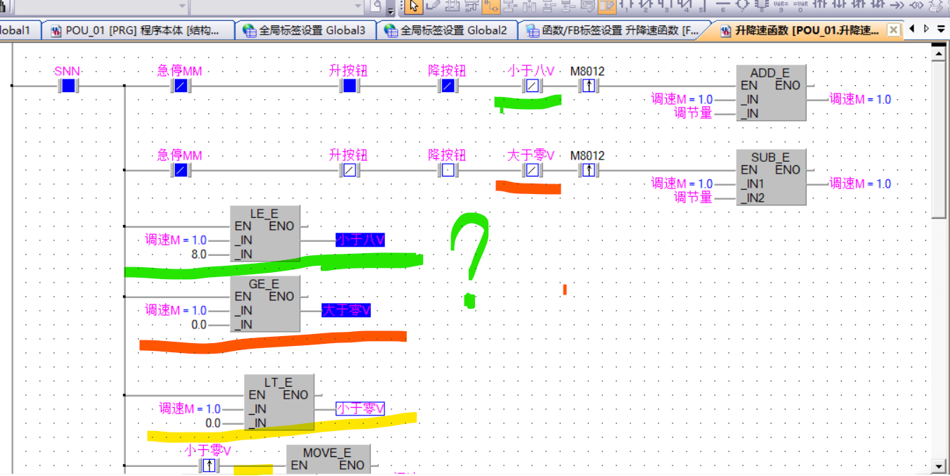 是不是小于某個(gè)電壓時(shí)可以使用調(diào)速,既然下面已經(jīng)接通,那么上面用作輸入的不用取反了吧