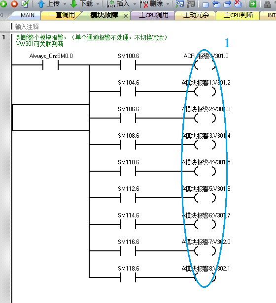第一,CPU及模塊報警。本例A為VW301,B為VW303(由于3.0可以帶8個模塊所以直接干滿,按需取用)。