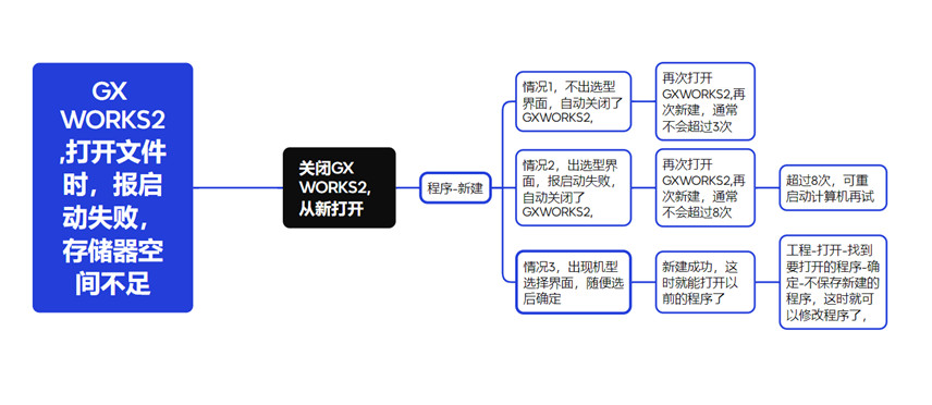 解決方法 打開GXWORKS2-工程-新建-3-10次新建后會新建成功,在此基礎(chǔ)上打開要修改的程序即可