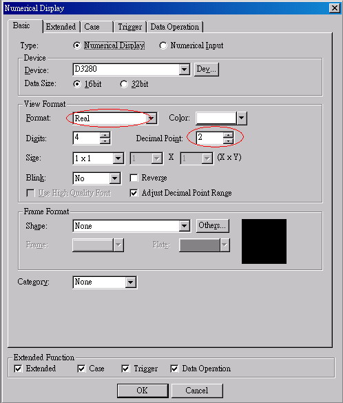 最近公司一臺設備需改善,PLC為三菱A系列,觸摸屏為三菱GOT960,需要在在觸摸屏幕增加一鍵盤輸入,帶小數的。本人在觸摸屏上增加了幾個鍵盤輸入顯示器定義為實數輸入,可是當輸入數字時卻只能輸入個位數以上,小數部分沒辦法輸入,比如輸入66.56結果變成只輸入66.00,PLC監控也只是66,而Proface輸入會變6656,是否要PLC里面的數據要先定義為小數呢,如果是請問A系列要怎么定義小數呢,指令怎么寫?或者是有什么辦法,請哪位高手指點一下,謝謝!