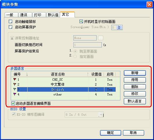 然后在【其他】頁面,設(shè)定三種語言的“編號”和“設(shè)定值”,并將其啟用。這樣就設(shè)定完了。