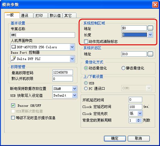 首先在screen editor 里面打開【選項】--【設(shè)定模組參數(shù)】--【一般】里面設(shè)定系統(tǒng)控制區(qū),建議設(shè)定為內(nèi)部地址以便于控制(如S0),將地址長度設(shè)定為8(必須是8,因為第8字才能控制語言切換,長度短了就沒有該功能)。