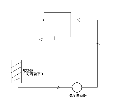 油在如上一個(gè)回路中流動(dòng)(流量是可設(shè)置的,實(shí)際應(yīng)用中可能為不同的值),通過一個(gè)電加熱器(可調(diào)功率)加熱,流出的管路上有個(gè)溫度計(jì),希望這個(gè)管路溫度維持在設(shè)定值(30~70攝氏度之間某個(gè)設(shè)定值。)