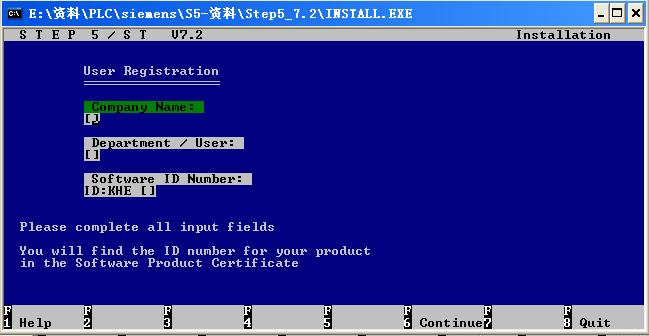 4.在“Company Name”和“Department/User”欄內(nèi)輸入英文字母,在“SoftWare ID Number”欄內(nèi)輸入"0123456789",然后按按“F6”鍵進(jìn)入下一步,等待一段時(shí)間后就會(huì)提示安裝完成。