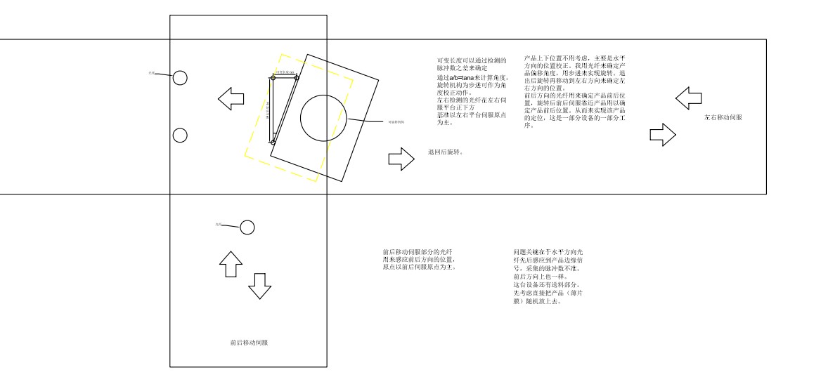這個在輸送帶上安裝編碼器,在前面的光纖有脈沖輸入時計數(shù),在第二個光纖有脈沖輸入停止計數(shù),然后通過三角函數(shù)計算角度,編碼器脈沖數(shù)越大精度越高,但是要解決兩個光纖不是測量同一條邊的問題,這樣檢測出來的數(shù)據(jù)是錯誤的,還有兩個光纖的相對位置不能動,還有偏光片的角度一定是一個固定的角度,不然計算出的角度也是不準(zhǔn)確,還有輸送帶來回時候有否移動,這個也是關(guān)鍵,最后的你要驗證脈沖數(shù)所對應(yīng)的輸送帶走的長度也很關(guān)鍵,長度算錯了,角度就不會準(zhǔn),大概的問題我已經(jīng)說了,你自己驗證看看問題大概出在那里。