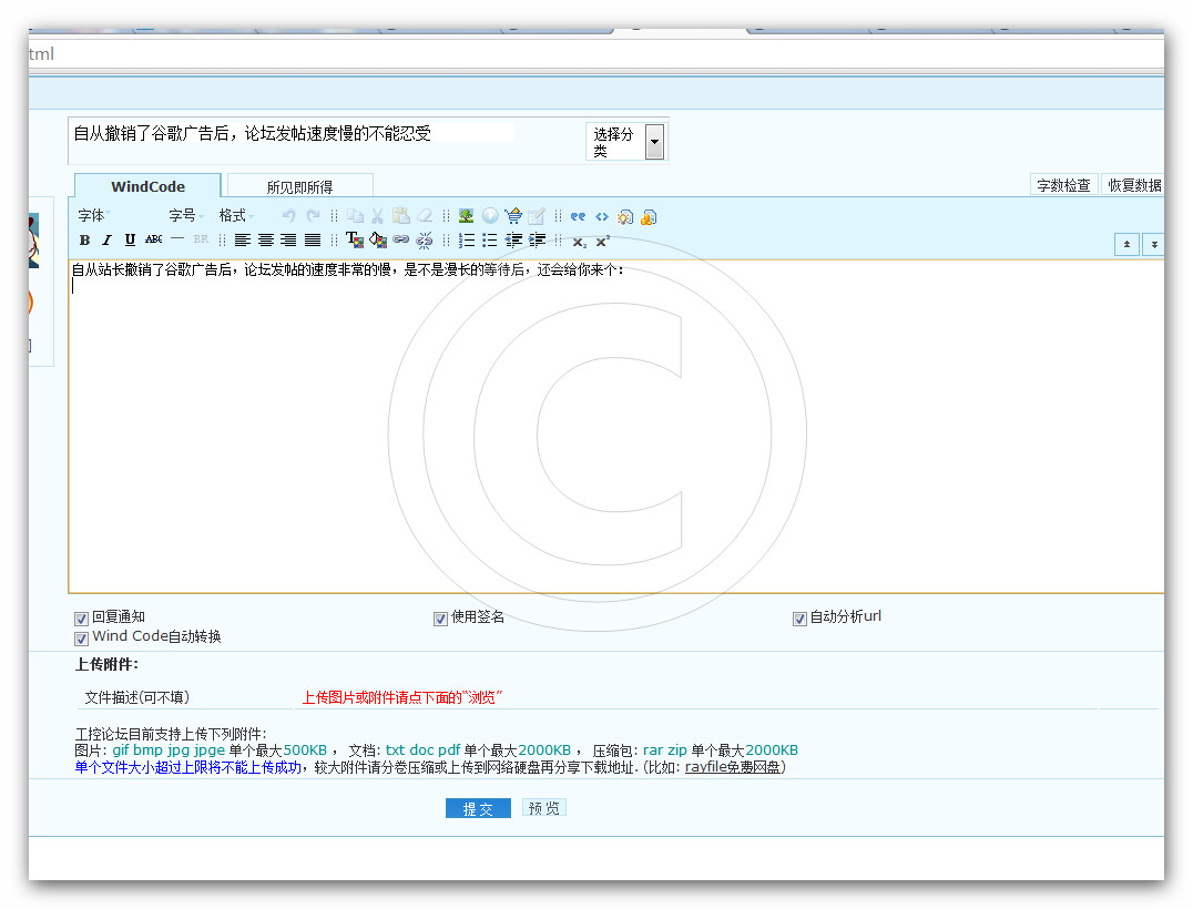 引用引用樓主cvlsam于2012-05-08 21:08發(fā)表的 自從撤銷了谷歌廣告后,論壇發(fā)帖速度慢的不能忍受 :自從站長撤銷了谷歌廣告后,論壇發(fā)帖的速度非常的慢,是不是漫長的等待后,還會給你來個:發(fā)帖的時候還不能上傳圖片,只能回帖中上傳,如果引用回帖,那么也不能上傳圖片,難道是因?yàn)槲沂褂霉雀铻g覽器所致?