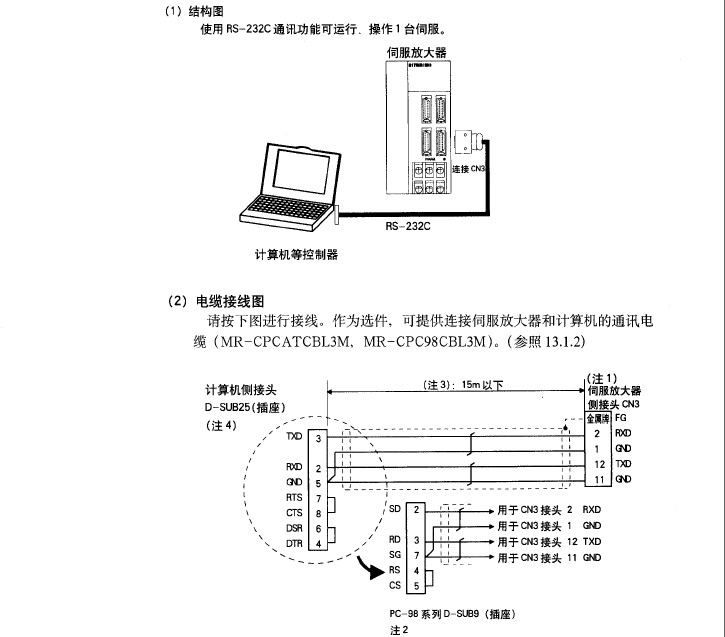 求助三菱MR-J2S-10A用伺服軟件通過CN3端口進行通訊,電纜線怎么接?需串聯要加電阻嗎?