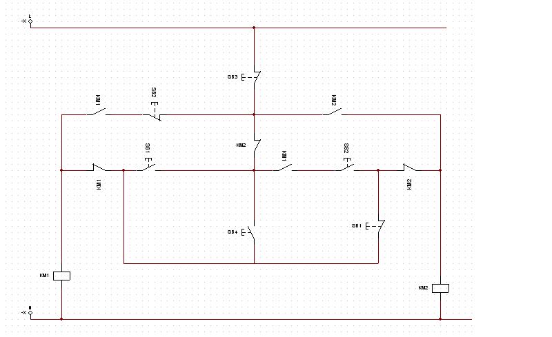 3. 以上先后次序不能亂,即SB1-(電機(jī)M1先啟動(dòng))-SB4-(電機(jī)M2啟動(dòng))-SB2-(電機(jī)M1停止)-SB3(電機(jī)M2停止)。