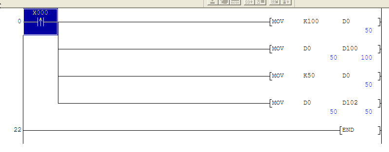 但是,并非同時傳送,因為PLC程序的執行由上往下,這樣,首先傳送了H101,然后再傳送了H100,期間相隔了指令的執行時間。