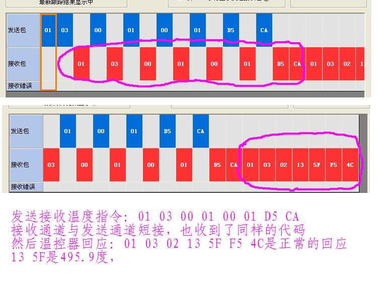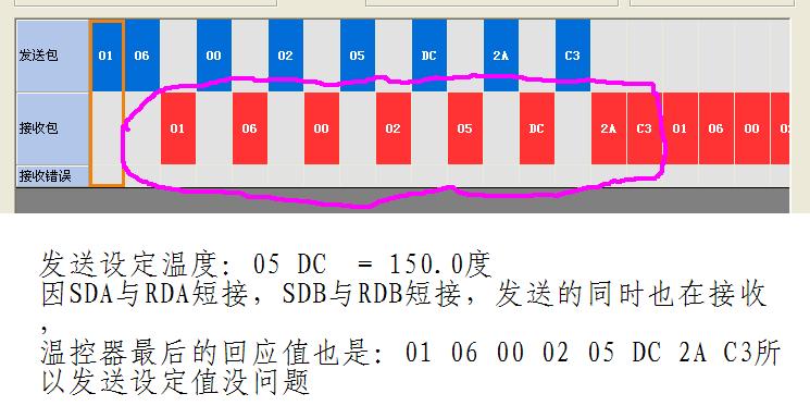 和昨天效果差不多,也是可以寫,讀不出,用串口調試軟件看溫控器的回應數值也是正常的,會不會是接線有點問題?