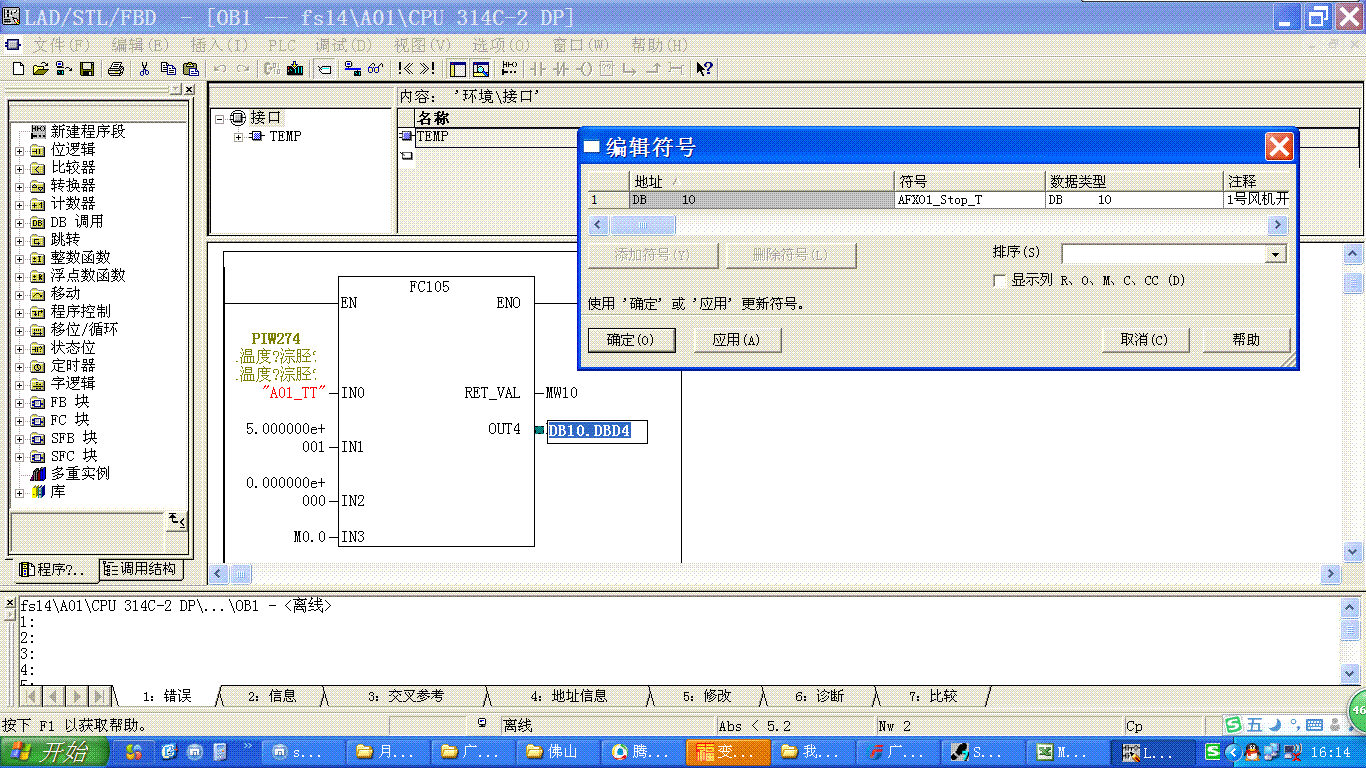 從你14樓的程序來看,程序是調用了FC105塊,是轉換、計算線性模擬量的程序塊。