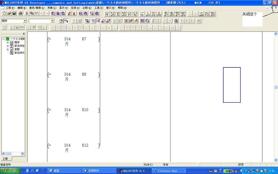 引用引用第12樓rtzz于2008-06-20 09:49發表的 :右上角有兩個關閉按鈕,你點下面一個,把所有的小窗口關掉(gx-developer別關哦),然后點在線里的傳輸就行了,我以前摸索出來的經驗,哈哈