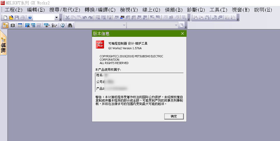 目前手邊的 GX WORKS2是繁體中文版的,但版本有點舊