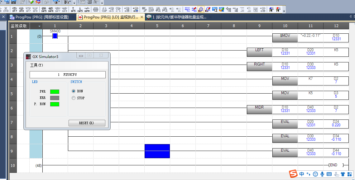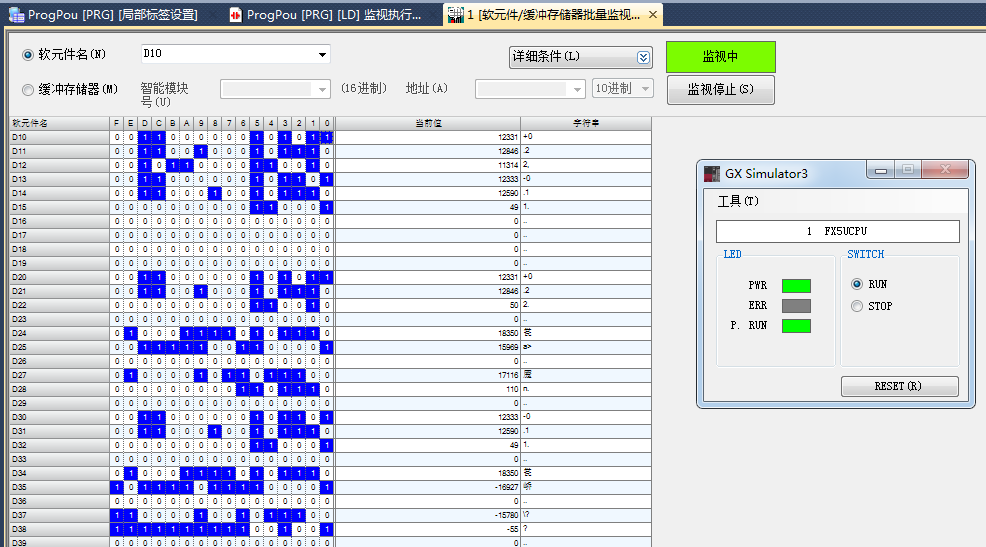 之前一直沒用過PLC接收多個(gè)引導(dǎo)量,如CCD拍照如果有X/Y/角度,怎么去分開截取,主要是不知道字符在D里面是怎么存儲的 ![]() 用FX5U模擬試了下,才知道一個(gè)D存儲兩個(gè)字符。然后翻手冊,找到了LEFT/RIGHT單向截取指令和MIDR隨意截取指令,最終實(shí)現(xiàn)多個(gè)引導(dǎo)量的處理 實(shí)際使用中,需要注意字符串存儲和截取占用D的位數(shù),不要覆蓋了。 |