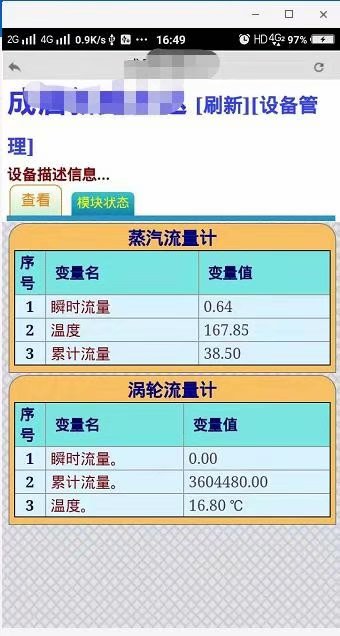 蒸汽流量計和渦輪流量計加裝巨控GRM230模塊實現手機遠程app監控,流量計通過485串口modbus rtu協議與模塊通信。分享下