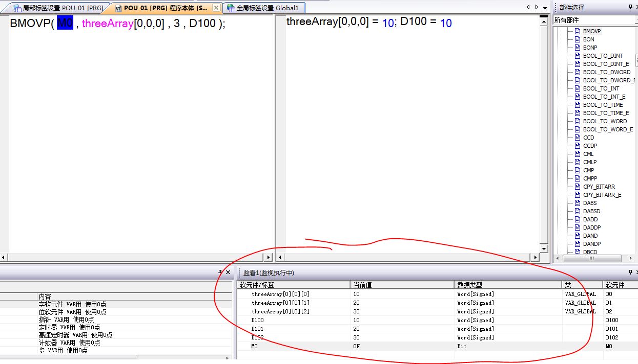引用引用第1樓cvlsam于2020-09-01 11:44發表的 :這種建法,好像不行。比方說一維地址起始D100--D199 二維起始地址D200-D299 三維起始地址D300--D399。那我賦值如何賦。我截圖上面我想同時取三個數據。但是監看窗口不是我想的那樣。GX Wroks3可以直接輸入三維數組。 [attachment=246902].......