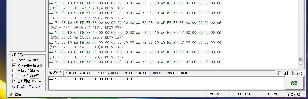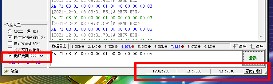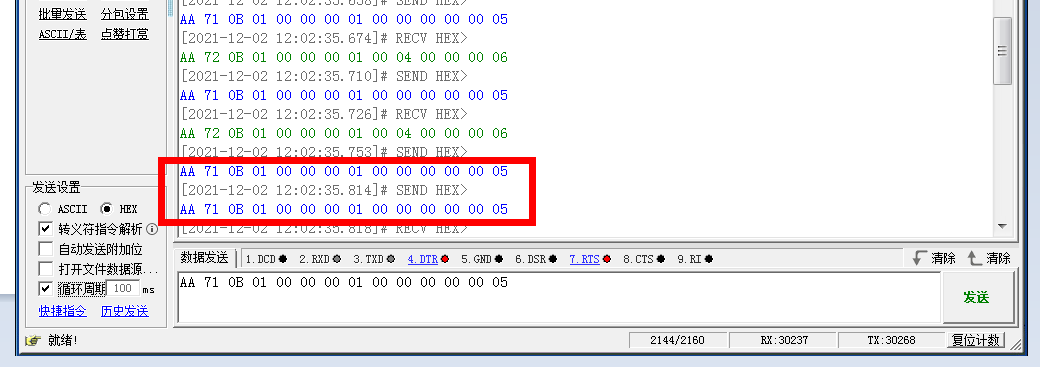 數據收發速度太快不太容易觀察,現在用串口助手測試監控收發能看到有發送給PLC、而PLC沒有回復(見下圖),我明白半雙工不能同時收發的,另外M7我在使用列表里面查過了沒有在其他地方使用,現在情況是上位機發送的比回復的多,也就是說PLC少回復了,正常接收要和發送的一樣多才對