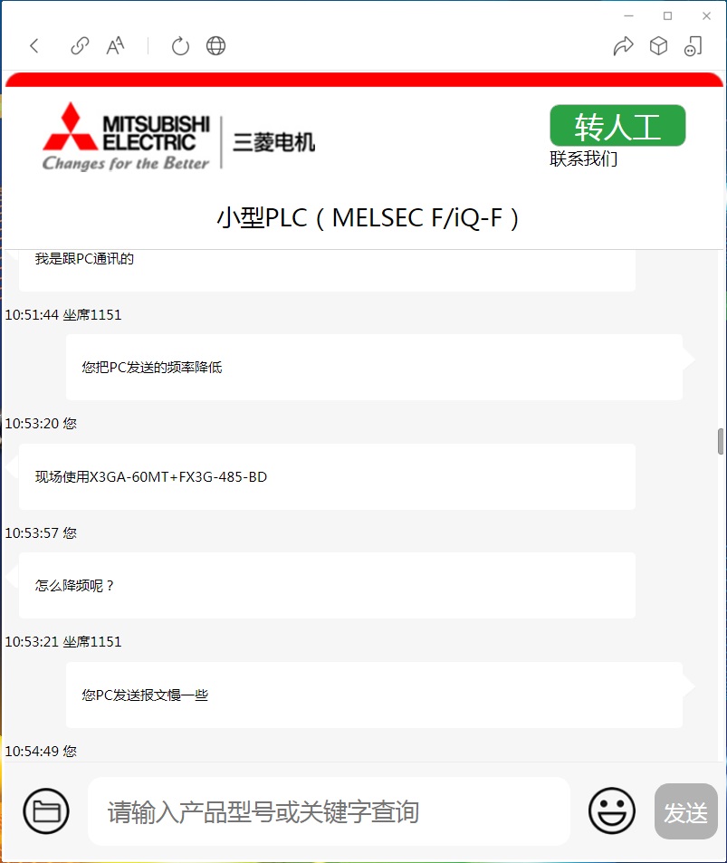 早上又問了三菱客服,說讓降低頻率發送報文,還是沒有找到問題所在