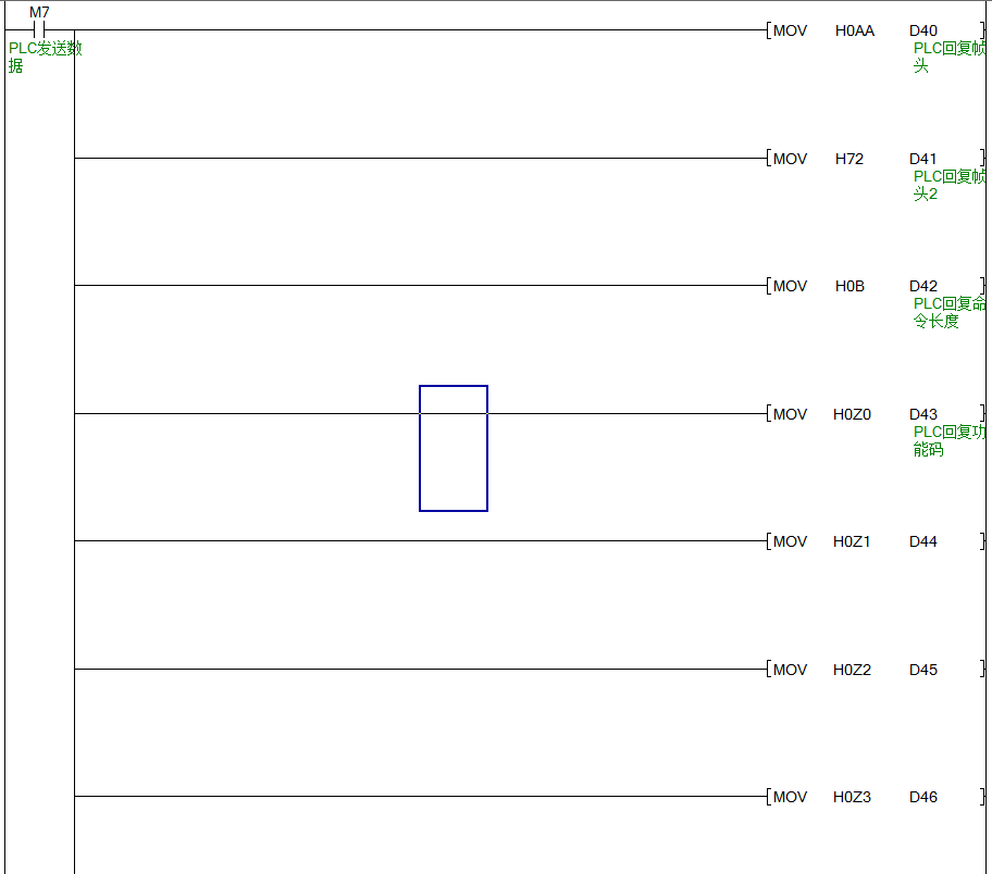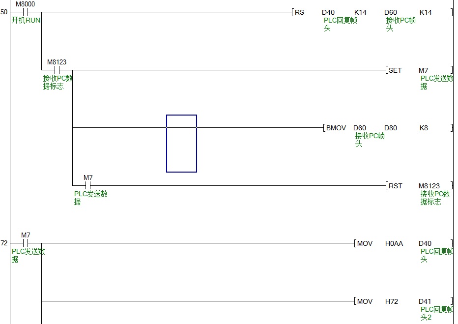 程序上面看不出什么問題,當M8123接收到指令時,立馬就啟動M8122回復PC,上面圖片上有程序就是接收和發送的,然后就是一直往復接收發送,沒有理由程序還有什么其他延時不回復的情況啊?