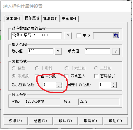 使用昆侖屏時,有時有些客戶要求數(shù)值顯示時,前位不足部分要補0顯示,例如數(shù)字1,客戶要求顯示3位數(shù)顯示成001,此時我們在此構件屬性窗口“最小整數(shù) 位”設定成3,則此數(shù)字框顯示數(shù)字時會始終顯示3位數(shù),不足3位時會在前位補0。